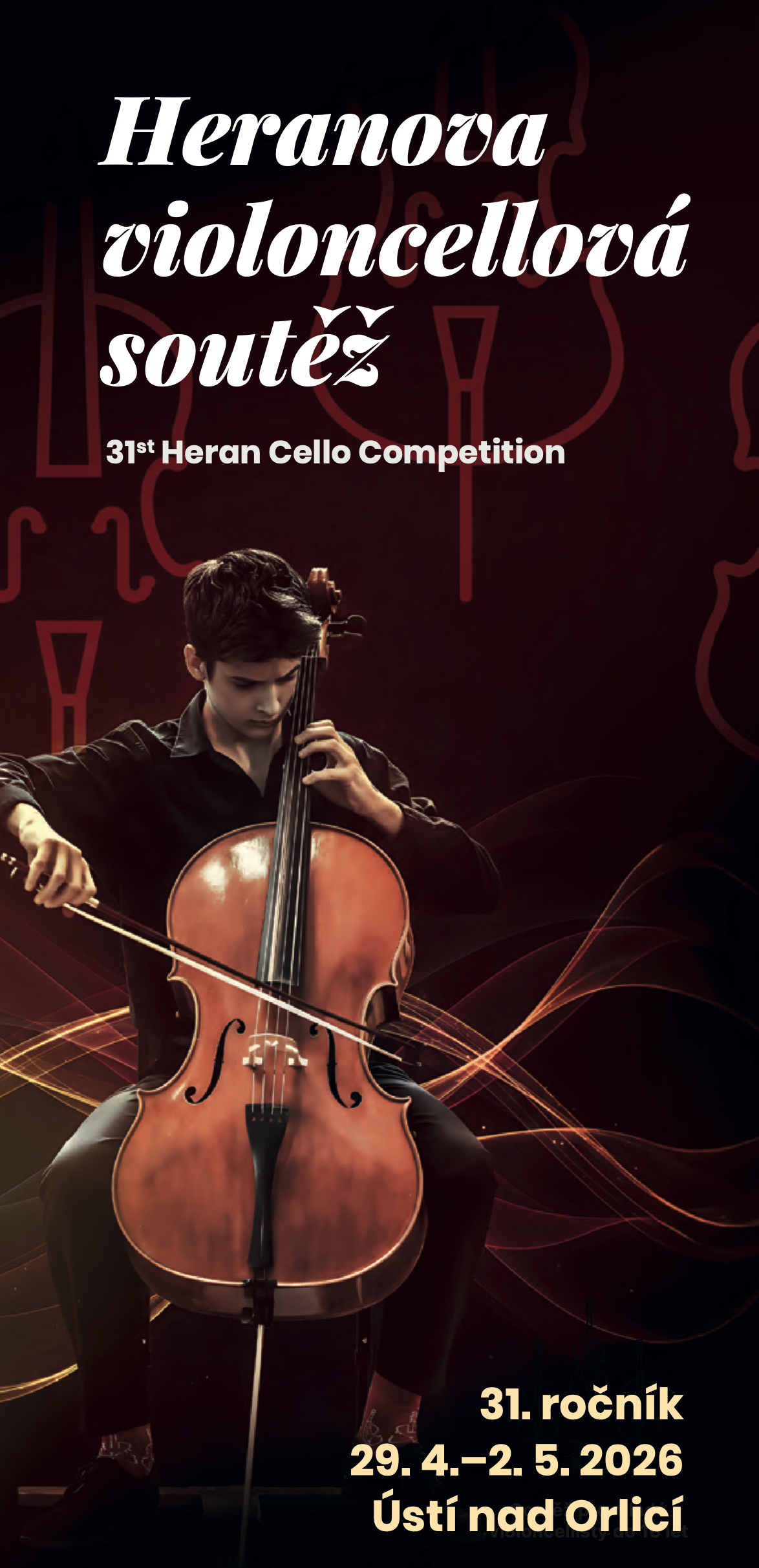 Město Ústí nad Orlicí vyhlašuje 30. ročník Heranovy violoncellové soutěže, která se uskuteční ve dnech 1. - 3. května 2025 za přítomnosti soutěžících v Ústí nad Orlicí v České republice.